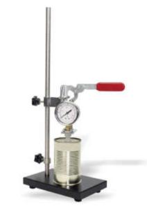 El manómetro o medidor de presión de latas mide la presión interna de latas de bebidas carbonatadas y otros recipientes. Después de colocar la botella en el equipo, al bajar la palanca se perfora la tapa de la lata sellándola al mismo tiempo con un sello de goma. La presión interna de la lata será registrada en el manómetro.